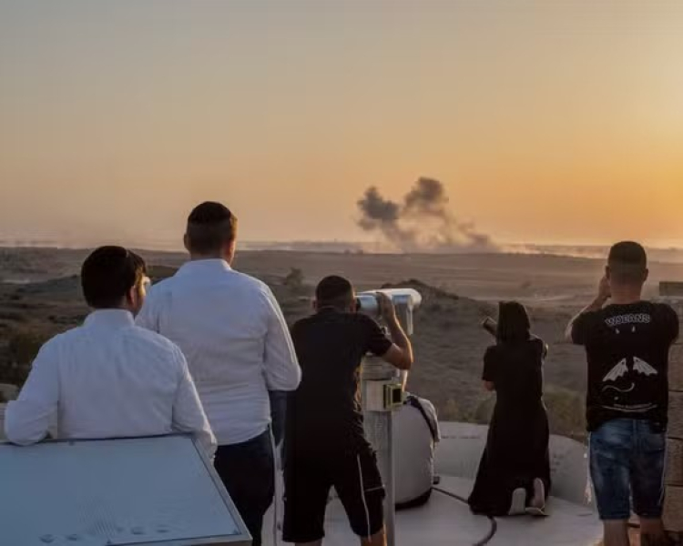 Savaşın en çok hissedildiği güney sınır kenti Sderot’ta, bazı İsrailliler Gazze’ye bakan gözlem kulelerinde hava saldırılarını izleyerek eğleniyor.