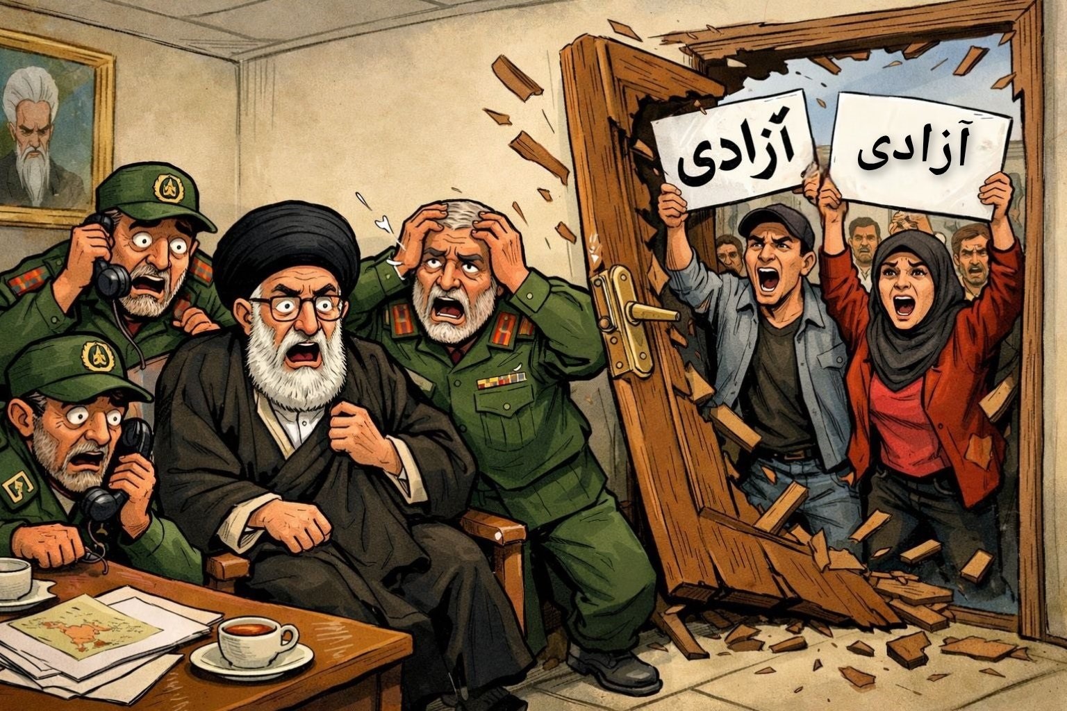 Sürecin devamında paylaşılan görsellerde siyasi hiciv ve sembolizm ön plana çıktı. Üçüncü paylaşımda, İranlı üst düzey liderlerin göstericilerden saklandığını tasvir eden bir karikatüre yer verilirken, "İsrail için belirledikleri yıkım takvimi şimdi kendileri için belirlenmiş oldu" ifadesi kullanıldı.