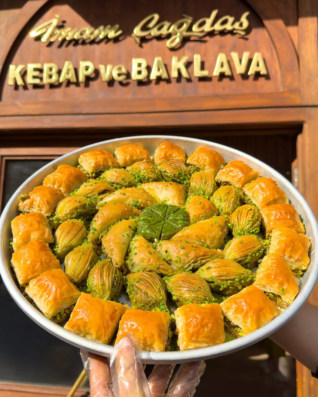 Gaziantep’in tanıtımında önemli bir yere sahip olan İmam Çağdaş, baklava ustalığını kuşaktan kuşağa aktaran, şehrin imza mekânlarından biri olarak biliniyor. Susuz yetişen sert buğdaydan elde edilen unla açılan ince yufkalar, Urfa yağı, dalından toplanan Antep fıstığı ve Elbistan’dan gelen şekerle birleşerek damakta unutulmaz bir lezzet sunuyor.