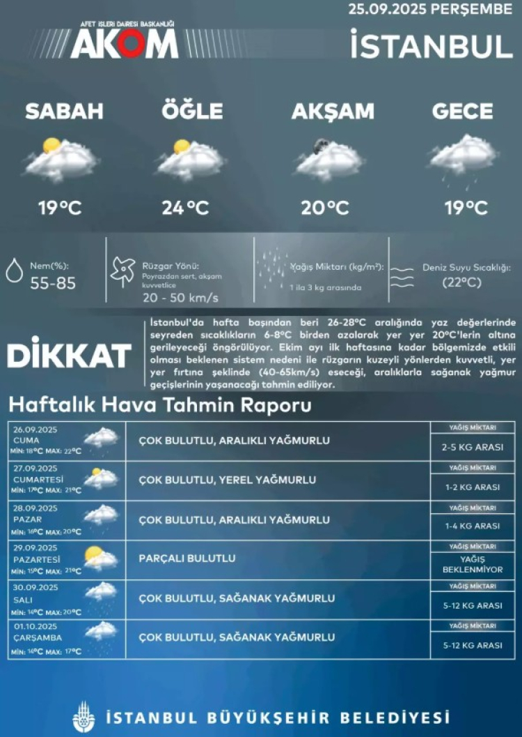 28 Eylül Pazar: Sağanak yağışlı, en düşük 17, en yüksek 22 derece