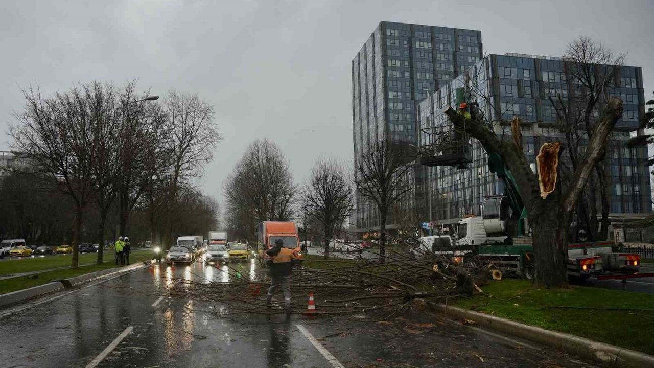 Büyükçekmece'de de durum farksız değildi. Şiddetli fırtına nedeniyle bir ağacın arabanın üstüne devrilmesi sonucu araçta maddi hasar oluşurken, yaşanan anlar güvenlik kamerası tarafından kaydedildi. İhbar üzerine olay yerine gelen itfaiye ekipleri devrilen ağacı kesti.