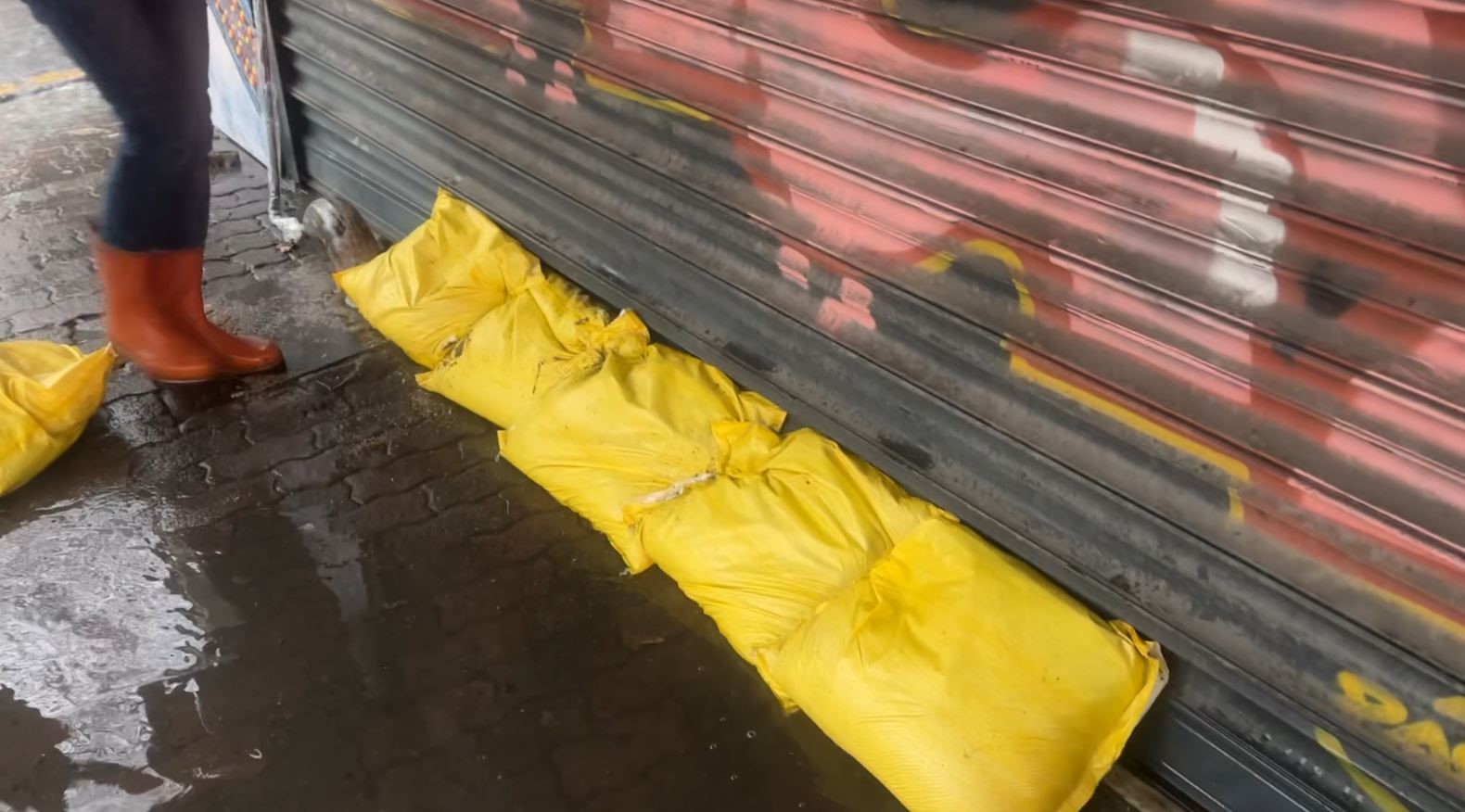 Karaköy Perşembe Pazarı'ndaki esnaf ise dükkanlarının önündeki su birikintilerini temizlemeye çalıştı. Yağmurun altında sırılsıklam olan esnaf bir yandan da kum torbalarını kapılarını kapının önüne koyarak su baskınlarına karşı önlem aldı. Bazı esnafın ise göle dönen yolları ise fırça yardımıyla süpürmeye çalıştıkları görüldü. Şiddetli rüzgarın etkisiyle bir binadan sıva dökülürken, dükkanın önündeki ürünler ise yere savruldu. Oradaki esnaf ise "Sıvılar düşüyor sıvalar bina yıkılıyor" dedi.