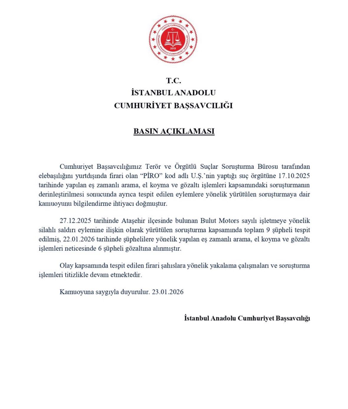 ANADOLU CUMHURİYET BAŞSAVCILIĞI SORUŞTURMA BAŞLATTI