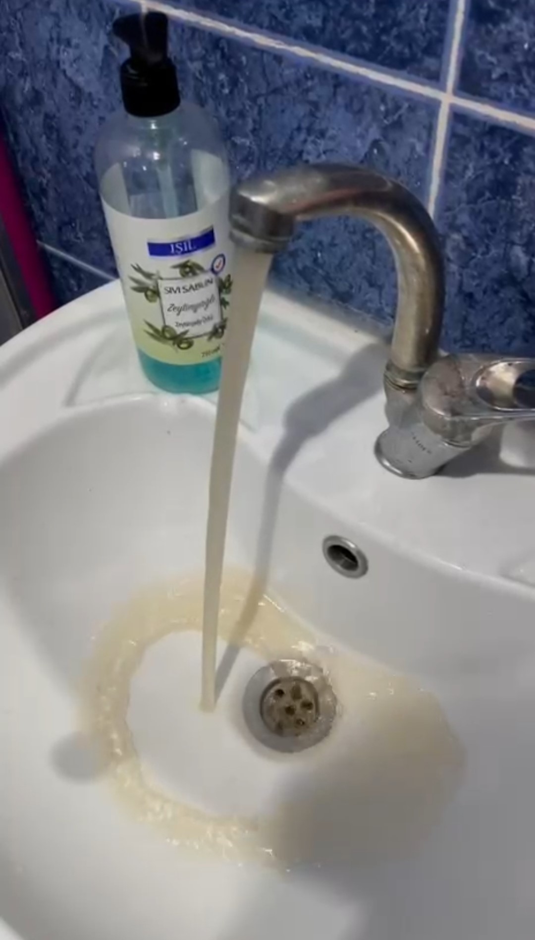 İstanbul Ümraniye'de yaklaşık 2 ay boyunca kesilen suların geldiğinde kirli bir şekilde akması vatandaşların tepkisine neden oldu. Durumu videoya çekerek tepkisini dile getiren bir vatandaş, yetkililerden bu duruma çözüm bulunmasını beklediğini belirtti.