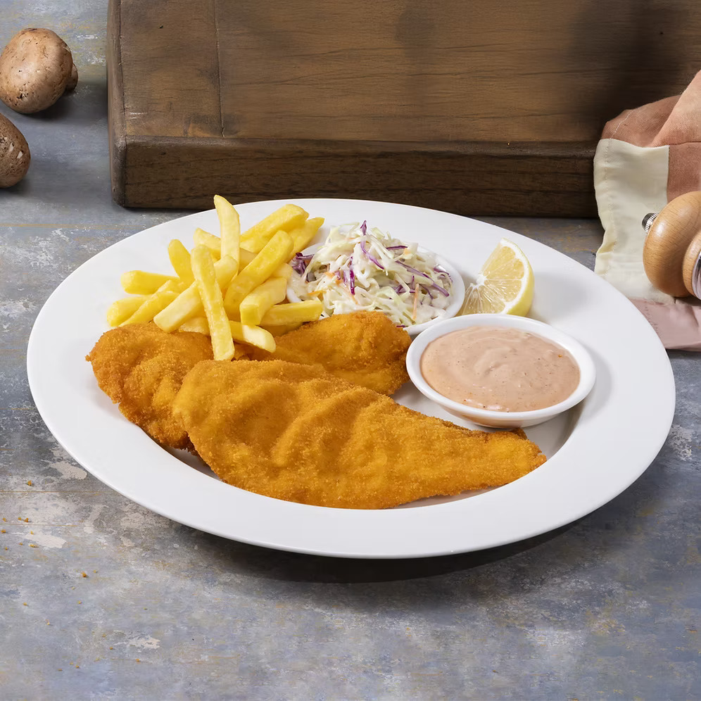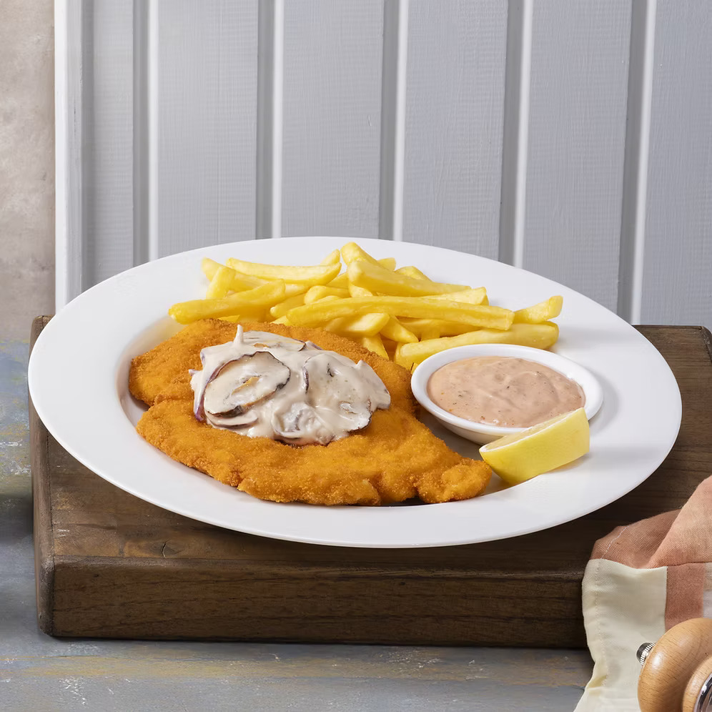 İstinye Tavukçusu’nda menüde yer alan şinitzel (schnitzel), günlük marine edilen tavuk göğsü ince dövülüp una, yumurtaya ve galeta ununa bulanarak çıtır şekilde kızartılır. Menülerinde “Viyana Schnitzel” gibi klasik ve üzerinde kremalı mantar sos ya da Akdeniz salatalı versiyonlar gibi farklı sunumlar da bulabilirsiniz.