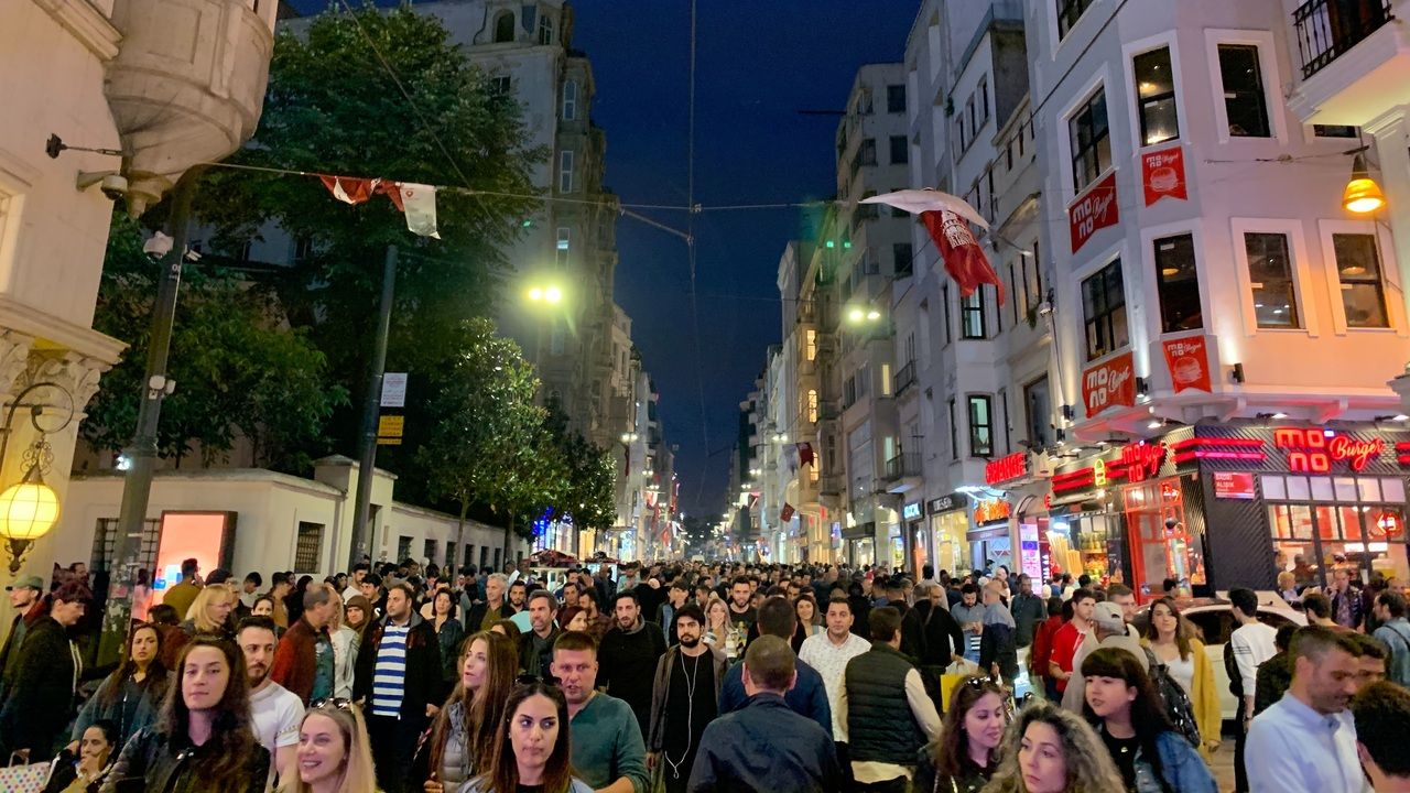 Taksim Meydanı ve çevresindeki kalabalık her geçen saat daha da artarken, İstiklal Caddesi'ni dolduran ziyaretçiler yoğunluk dolayısıyla yürümekte zorluk çekiyor.