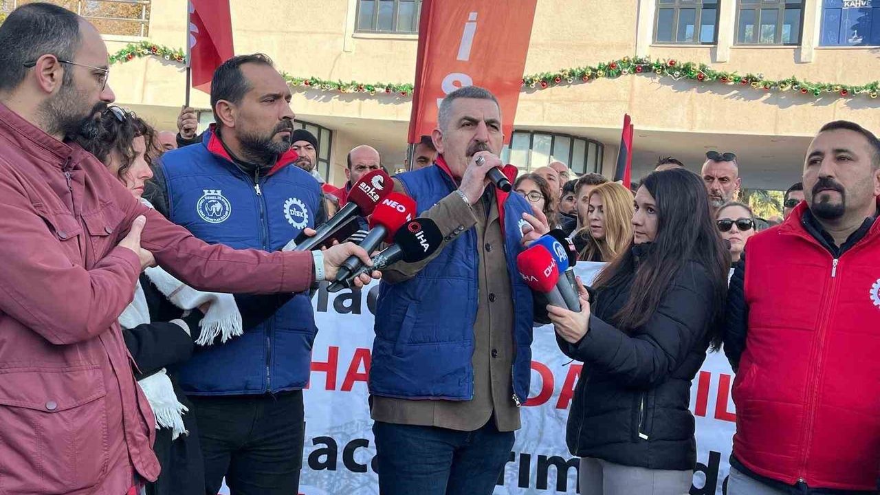 Basmane Kapısı önünde yapılan basın açıklamasında konuşan Genel-İş İzmir 2 No'lu Şube Başkanı Ercan Gül, İzmir Büyükşehir Belediye Meclisi CHP Grubu Sözcüsü Yağmur Yurdakul'un 'DİSK-AK Parti birlikte eylem yapıyor' sözlerine tepki göstererek şu sözlere yer verdi: "Cemil Başkanın gözüne az gelmiş olabilir ama biz 4 gündür işyerlerimizde baskı ve tehdit altındayız. Çözüm masasının kurulması lazım. 4 gündür bir kişi bile bizi arayıp sormadı. ‘Yeni pozisyon veriyoruz, kabul etmiyorsunuz' diyorlar. Ne işi verdilerse kabul ettiler. Havuzdaki arkadaşlarımız bugün ne iş verilirse yapacak durumda. Başkanı bürokratlar yanlış bilgilendiriyor. İş bir türlü elimize ulaşmıyor. Başkan ‘Belediyeyi batırmayacağım' diyor. 350 arkadaşımızı işe alınca belediye batmaz. Tasarruf işçinin ekmeğinden olmaz. Bize farklı, başkana farklı sayılar veriliyor. Toplamda 370 arkadaşımız havuzda bekliyor. Bu sayıları bize bürokratlar veriyor. Siyasetin kurbanı olmak istemiyoruz. Biz hiçbir siyasetin yanında değiliz. Buca'da AK Partili meclis üyeleri geliyor, ‘Bunlar birlikteler' diyorlar. Biz bugün alana çıktığımızda CHP ile defalarca mücadele ettik. Eksiği kendilerinde aramaları gerekiyor. Buraya gelip bizi dinlemeleri gerekiyor. Dertlerimizi dinlemeleri gerekiyor. Adım atmazlarsa boşluğu bulup buraya girerler. Bizim yolumuz da yönümüz de belli. Başkana çağrıda bulunuyorum. Burada alacaklarımız var, gelin masayı kuralım ve uzlaşı içinde İzmir halkına hizmet edelim."