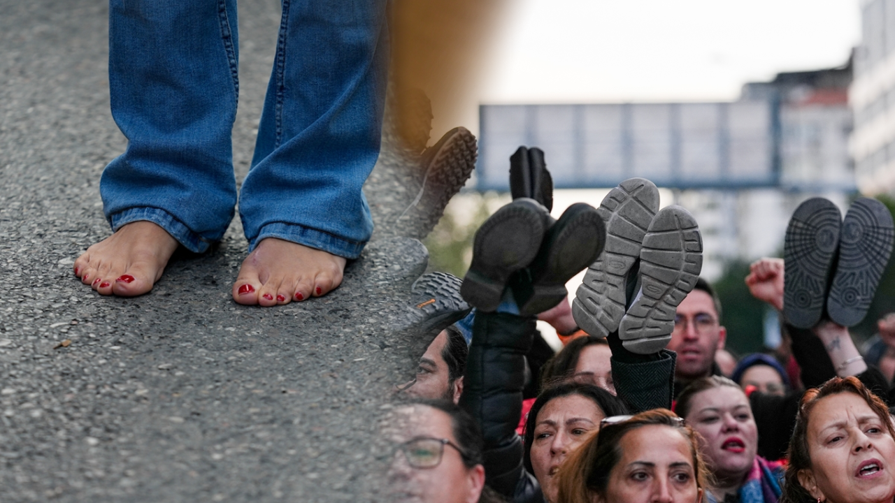 İşçiler ayakkabılarını ve çoraplarını çıkararak Mürselpaşa Bulvarı'ndan Kültürpark 9 Eylül Kapısı'na kadar yürüdü. Yürüyüş sırasında slogan atan işçiler, ellerindeki ayakkabıları salladı.