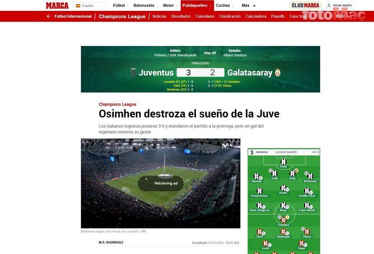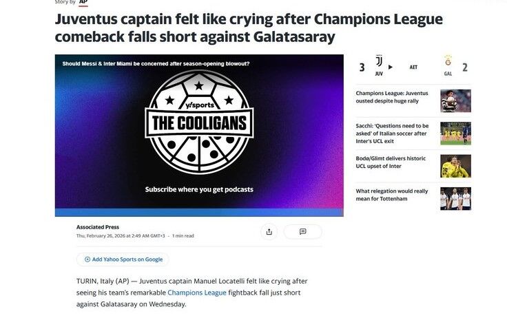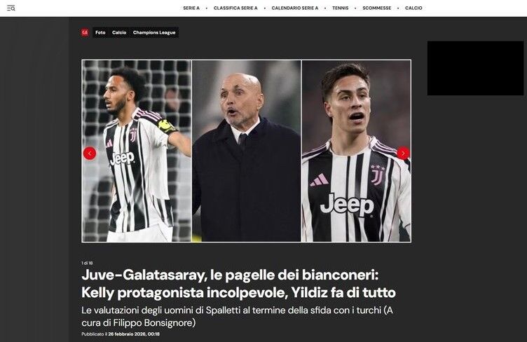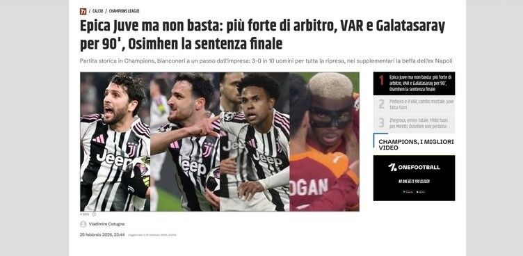 La Gazzetta dello Sport: ''Juventus, Galatasaray karşısında geri dönüş yapıp umutlandı, ancak uzatmalarda çöktü: Luciano Spalletti, UEFA Şampiyonlar Ligi'nden elendi.''