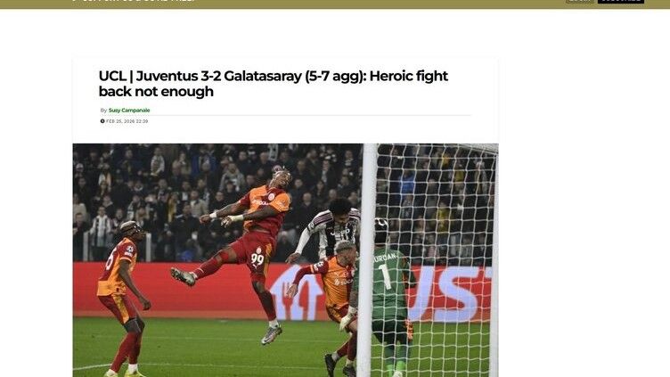Galatasaray, UEFA Şampiyonlar Ligi son 16 turu Play Off rövanş maçında deplasmanda Juventus’a 3-2 mağlup olmasına rağmen toplam skor avantajıyla adını üst tura yazdırdı. Kırmızı kart, penaltı kararı ve uzatmalara giden mücadele, Avrupa basınında geniş yer buldu.