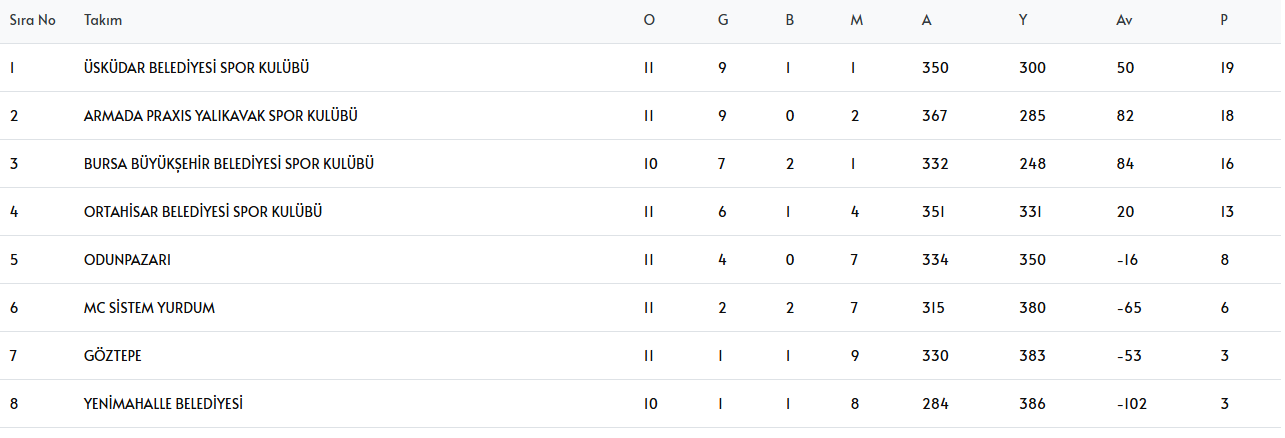 17:00 Yenimahalle Belediyesi – Üsküdar Belediyesi Spor Kulübü (Gazi Mustafa Kemal Atatürk Spor Kompleksi)