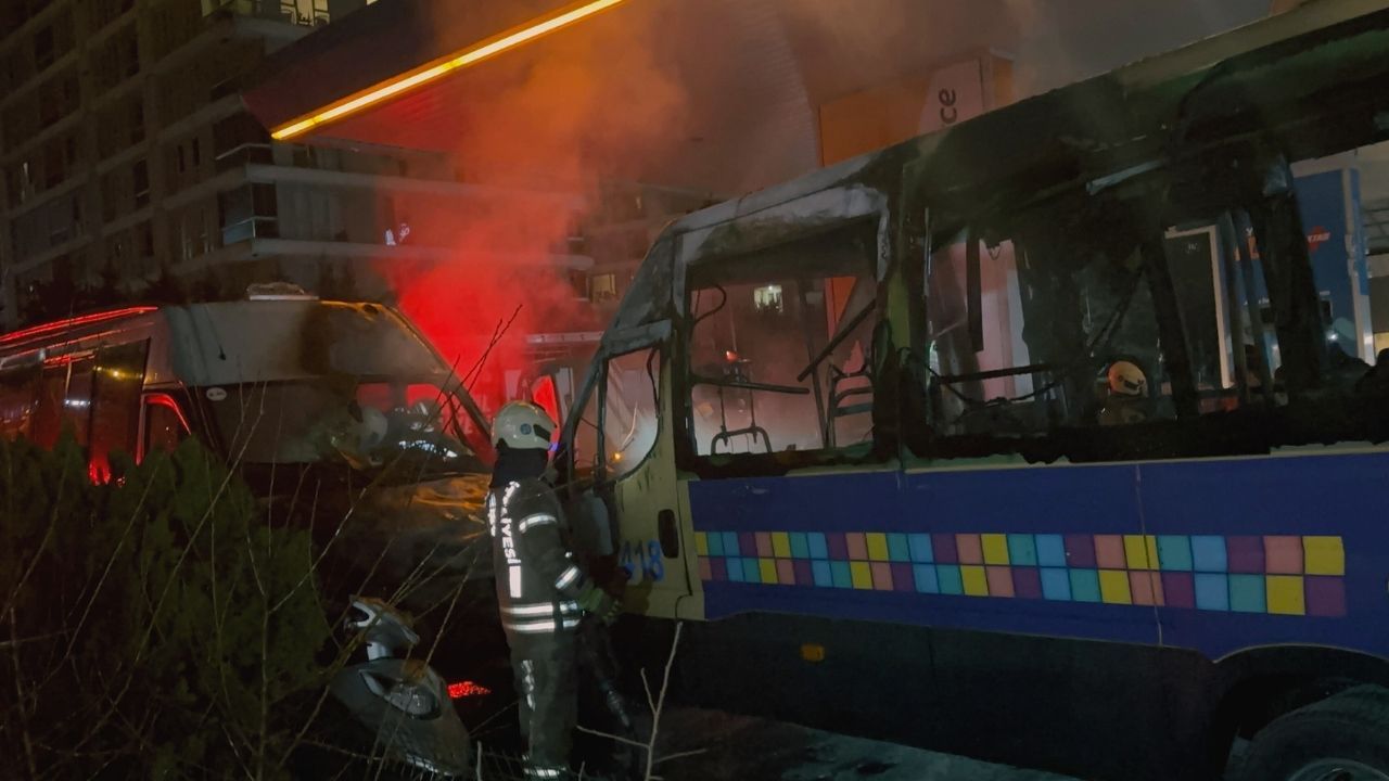 Dehşet veren yangın, saat 04:30 sıralarında Kağıthane Cendere Caddesi’nde meydana geldi. Henüz bilinmeyen bir sebeple cadde üzerinde bulunan benzin istasyonunda park edilmiş vaziyetteki 2 minibüs alev aldı. Yangının etkisiyle bölgede yoğun duman oluştu.