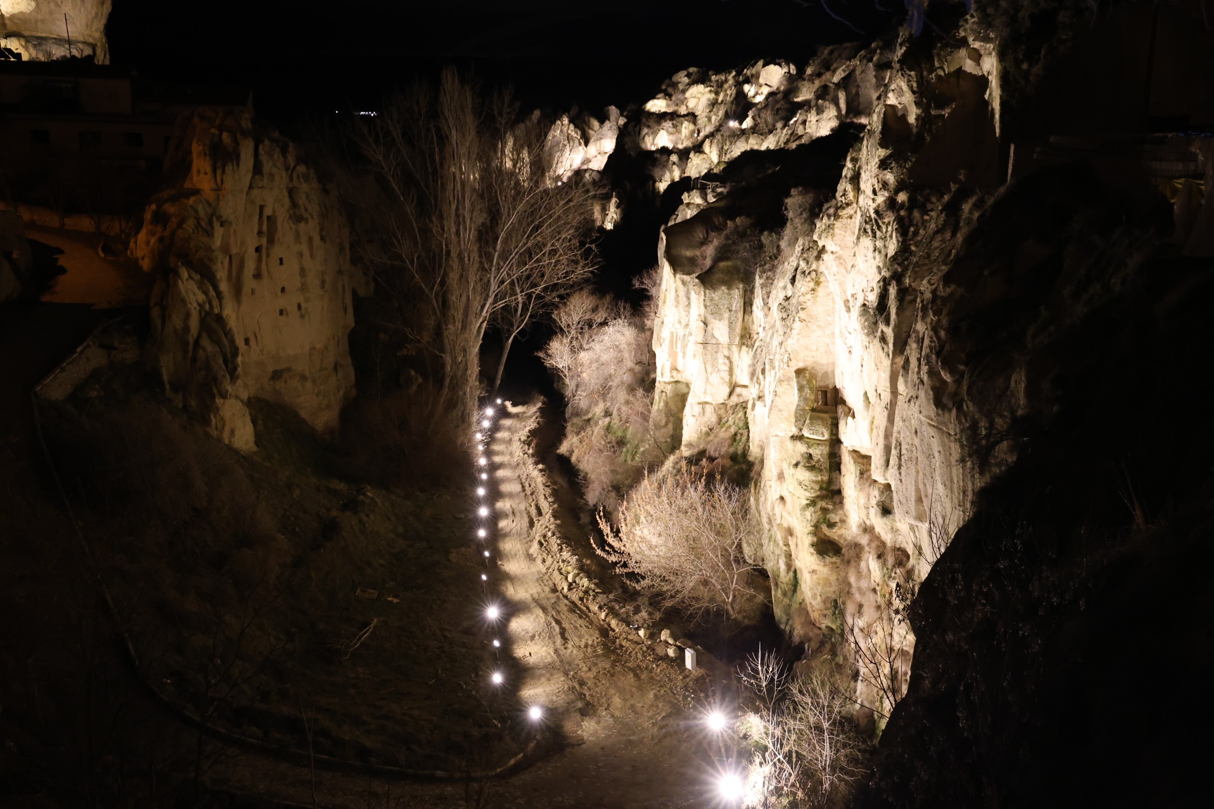 Ürgüp ilçesine bağlı Ortahisar beldesinde uygulanan proje ile daha önce yalnızca gündüz saatlerinde ziyaret edilebilen Balkan ve Kolastra vadileri, artık geceleri de güvenle gezilebilen alanlar haline geldi.