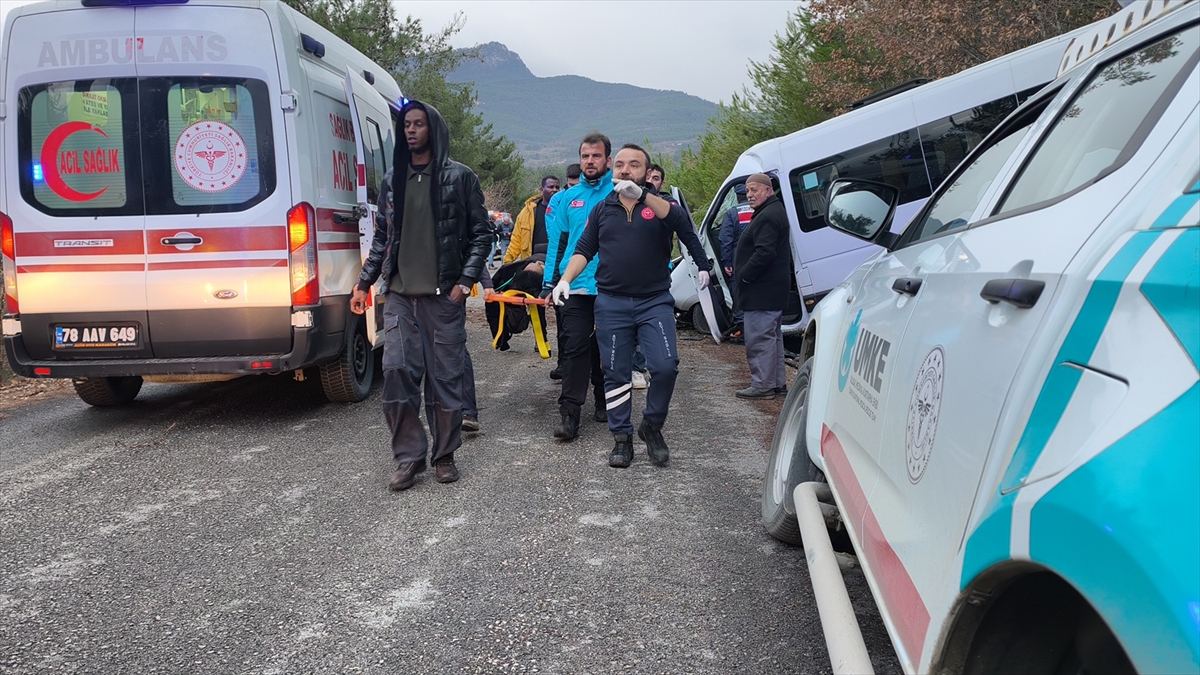 Güneşli köyü yoluna sürüklenen ve burada toprak zemine çarparak duran minibüsteki sürücü ile araçta bulunan 16 yabancı uyruklu öğrenci yaralandı.