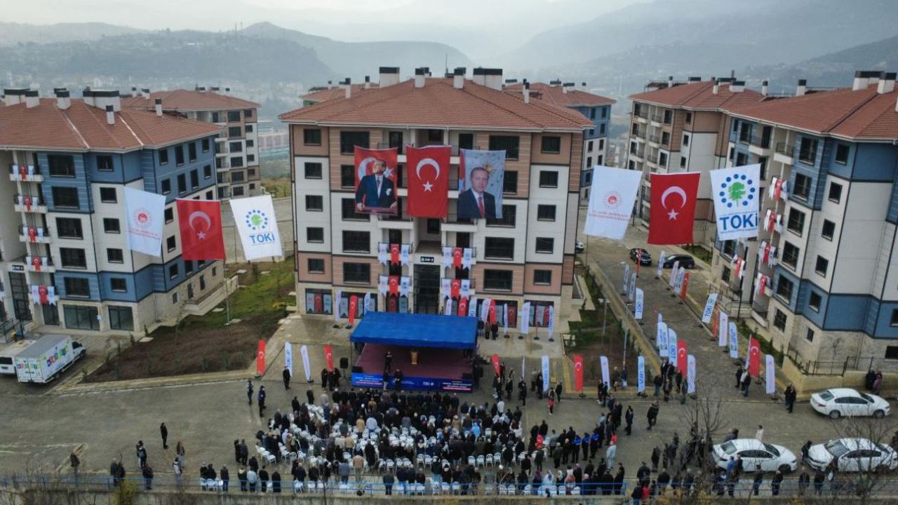 TOKİ tarafından inşası tamamlanan 280 konutun anahtar teslim töreni, Kartaltepe Mahallesi TOKİ Konutları bahçesinde gerçekleştirildi.