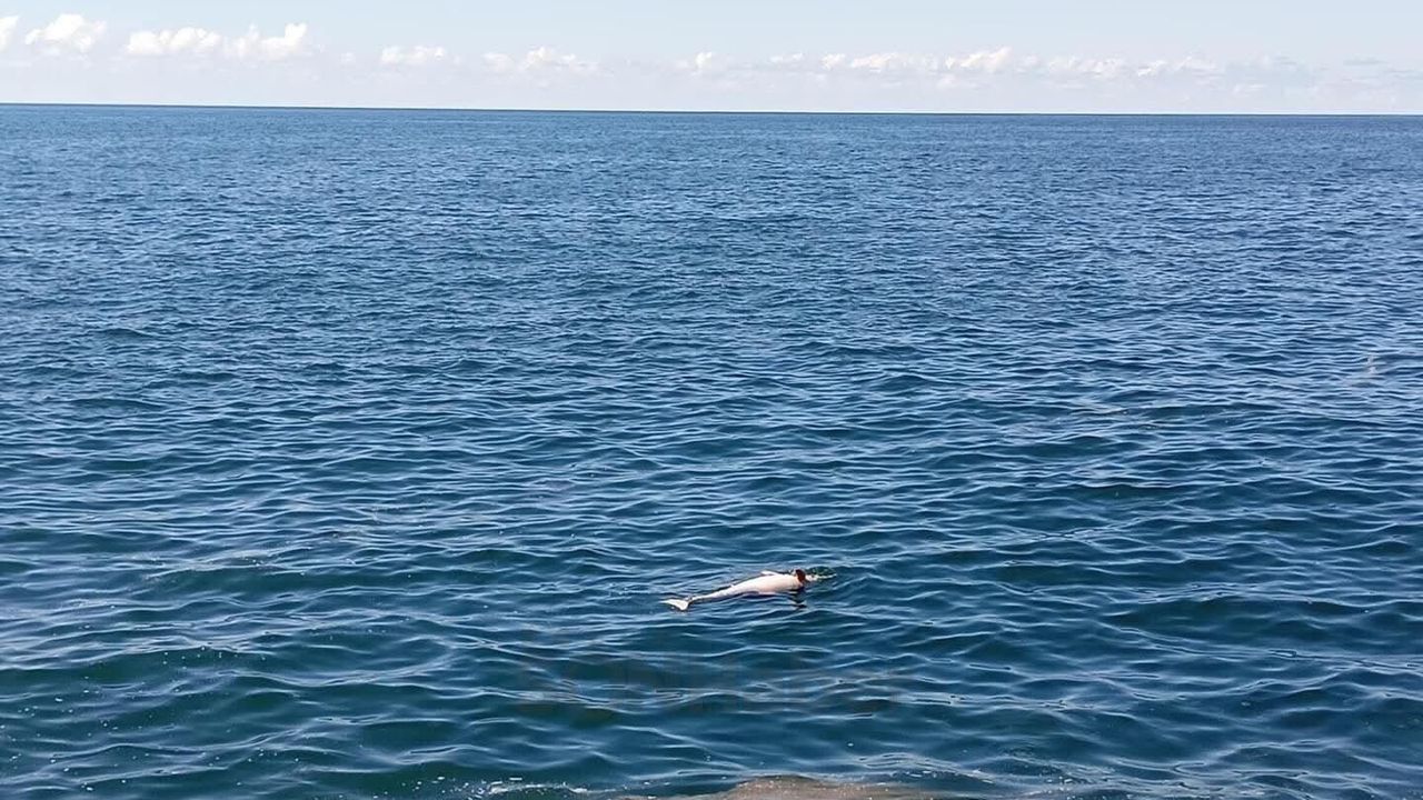 Uzun süre su üzerinde kıpırdamadan kalan yunusun ölmüş olabileceğinden şüphelenen vatandaşlar, durumu yetkililere bildirdi.