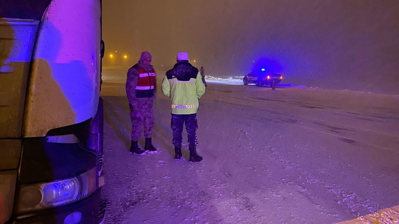 Yoğun kar yağışı ve tipi nedeniyle Kars-Ardahan kara yolu ağır tonajlı araç trafiğine kapatıldı.
