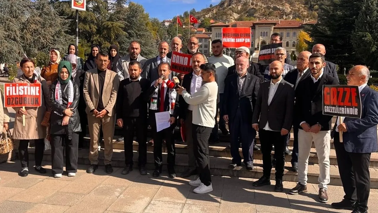Türkiye ve dünyadan binlerce insanın, bu hukuksuz saldırılara karşı sokaklara çıktığını vurgulayan Güzel, "Biz de insanlık onurunu ayaklar altına alan, savaş suçları işleyen ve masum insanları katleden; geriye kalanları aç bırakarak topraklarından sürgün eden barbar ve siyonist İsrail terör devletine karşı sesimizi yükseltiyoruz." ifadesini kullandı.