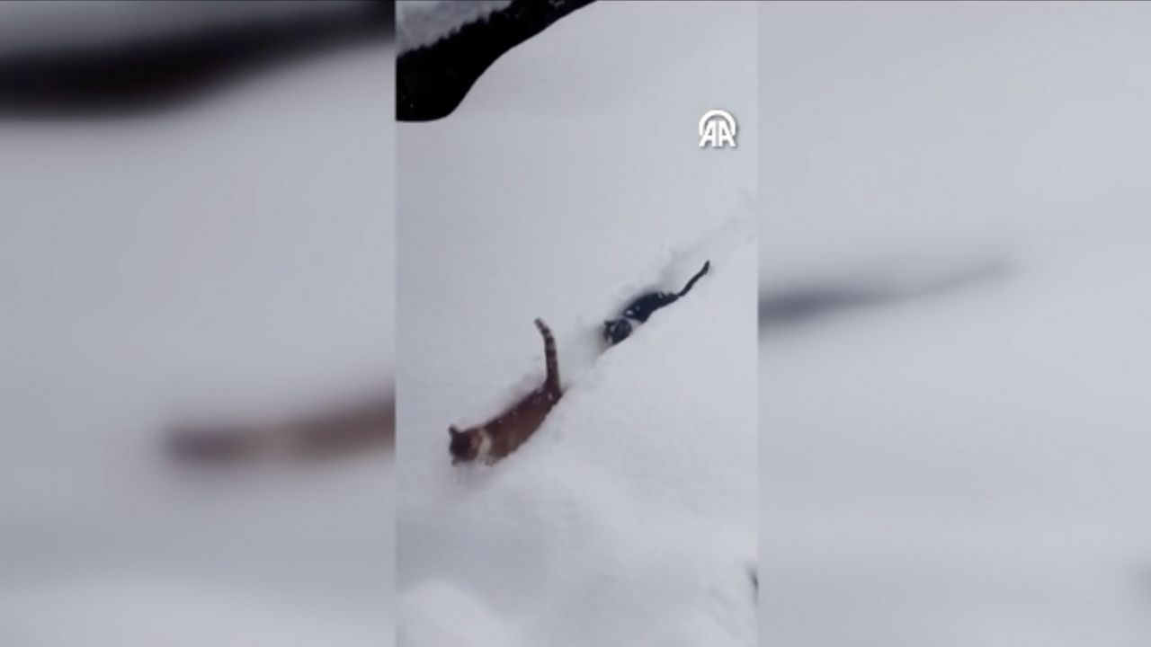 Köydeki son durumu anlatan Şahin, karda yürüyen kedilere seslendi. Şahin'in çağrısı üzerine, biri önde olmak üzere 6 kedi, karda tek sıra halinde imamın evine doğru yürümeye başladı.