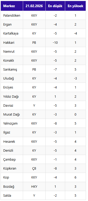 Palandöken’i 215 santimetre kar kalınlığıyla Ergan ve Kartalkaya takip ederken, Hakkari’de 212, Nemrut’ta ise 195 santimetre kar ölçüldü. Doğu Anadolu ve Karadeniz bölgelerindeki merkezlerde kar örtüsünün güçlü şekilde devam ettiği gözlendi.