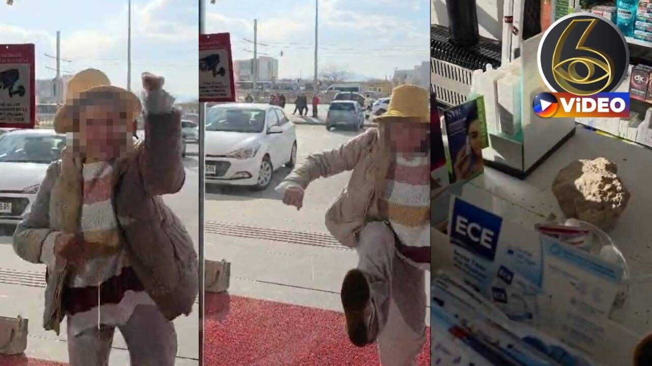 İddiaya göre ilaç almak için gittiği eczaneye fark ücreti ödemek istemeyen kadın bir müşteri, yolda bulduğu taşı içeri doğru attı. Taş masanın üzerine düşerken hızını alamayan kadın, eczanenin camını yumruklamaya ve tekmelemeye devam etti.