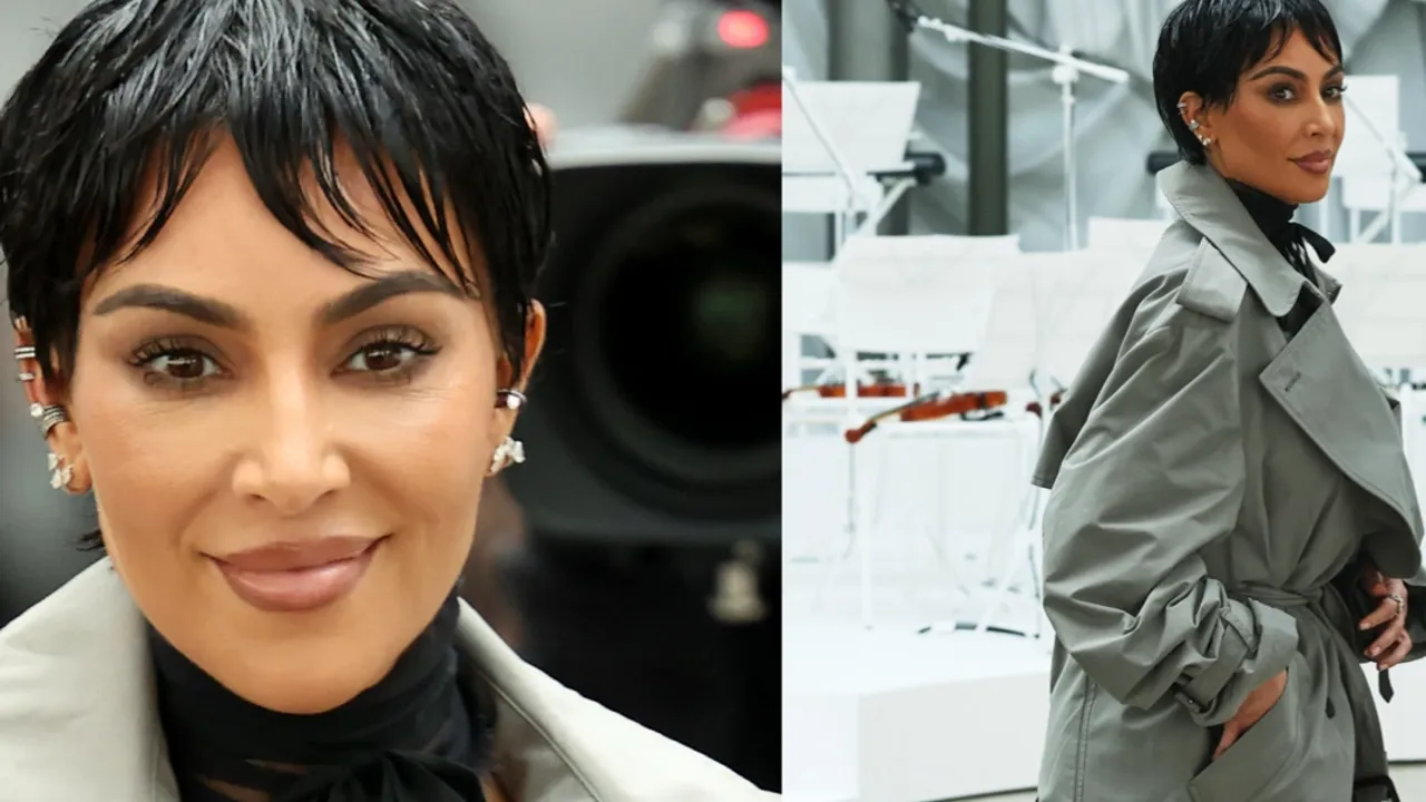 Kim Kardashian, Paris Moda Haftası''nda alışılmış tarzının dışına çıkarak dikkatleri üzerine çekti. Uzun siyah saçlarıyla tanınan Kardashian, bu kez alnından aşağı dökülen tutamlarla çerçevelenmiş, geriye doğru jölelenmiş dağınık bir peri kesimi tercih etti.
