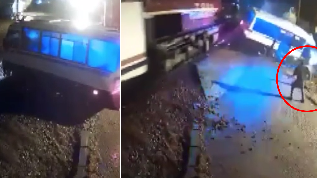 Öte yandan kaza anı güvenlik kamerasınca kaydedildi.