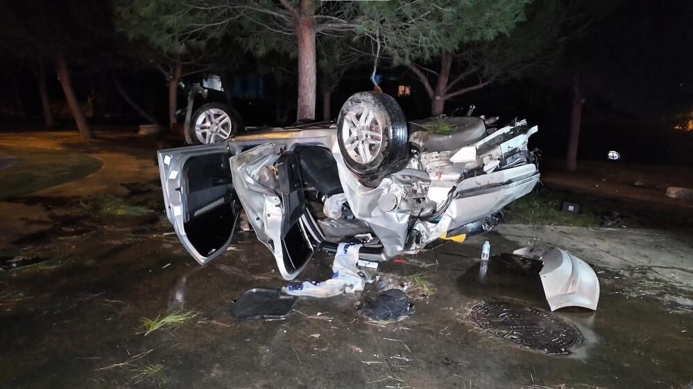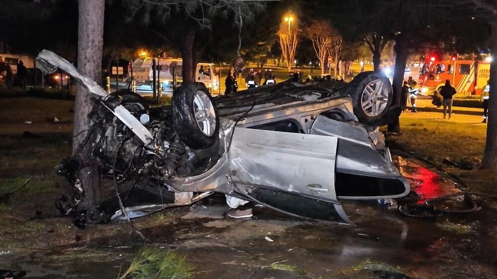 Kazanın ardından kontrolden çıkan otomobil takla atarak yol kenarındaki parka daldı.