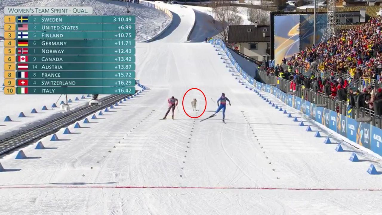 Winter Olympic Games kapsamında düzenlenen yarışta sıra dışı bir an yaşandı. Mücadele tüm hızıyla sürerken kayak pistine aniden bir kurt girdi.