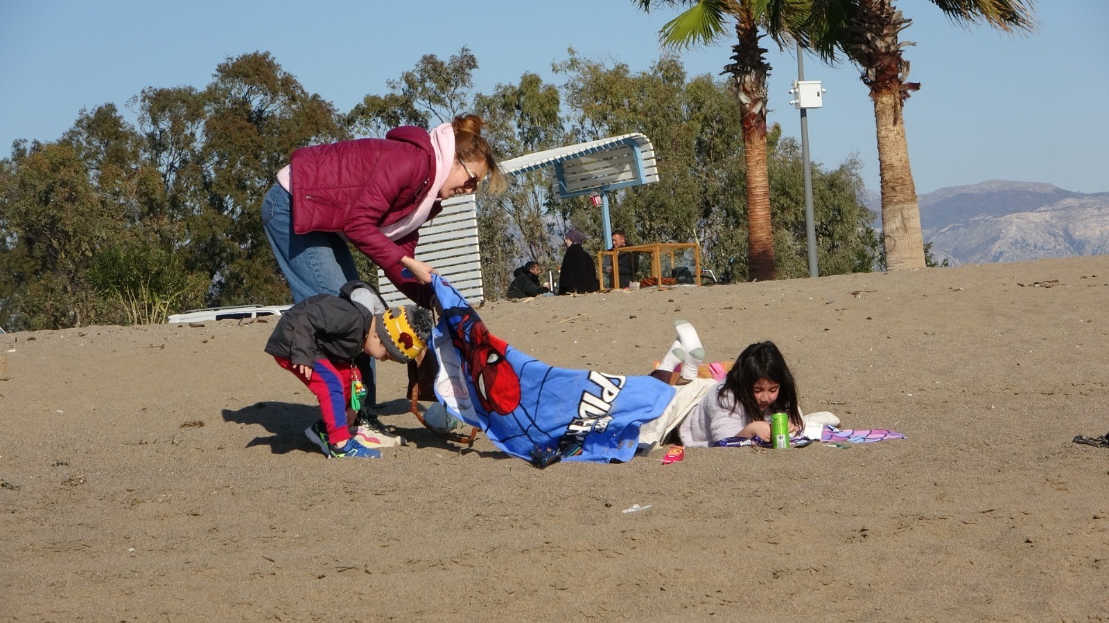 Manavgat ilçesinde Sorgun-Boğaz ve Mendirek Sahili’ne gelenler, kışın ortasında güneşin tadını çıkarma fırsatını değerlendirdi.