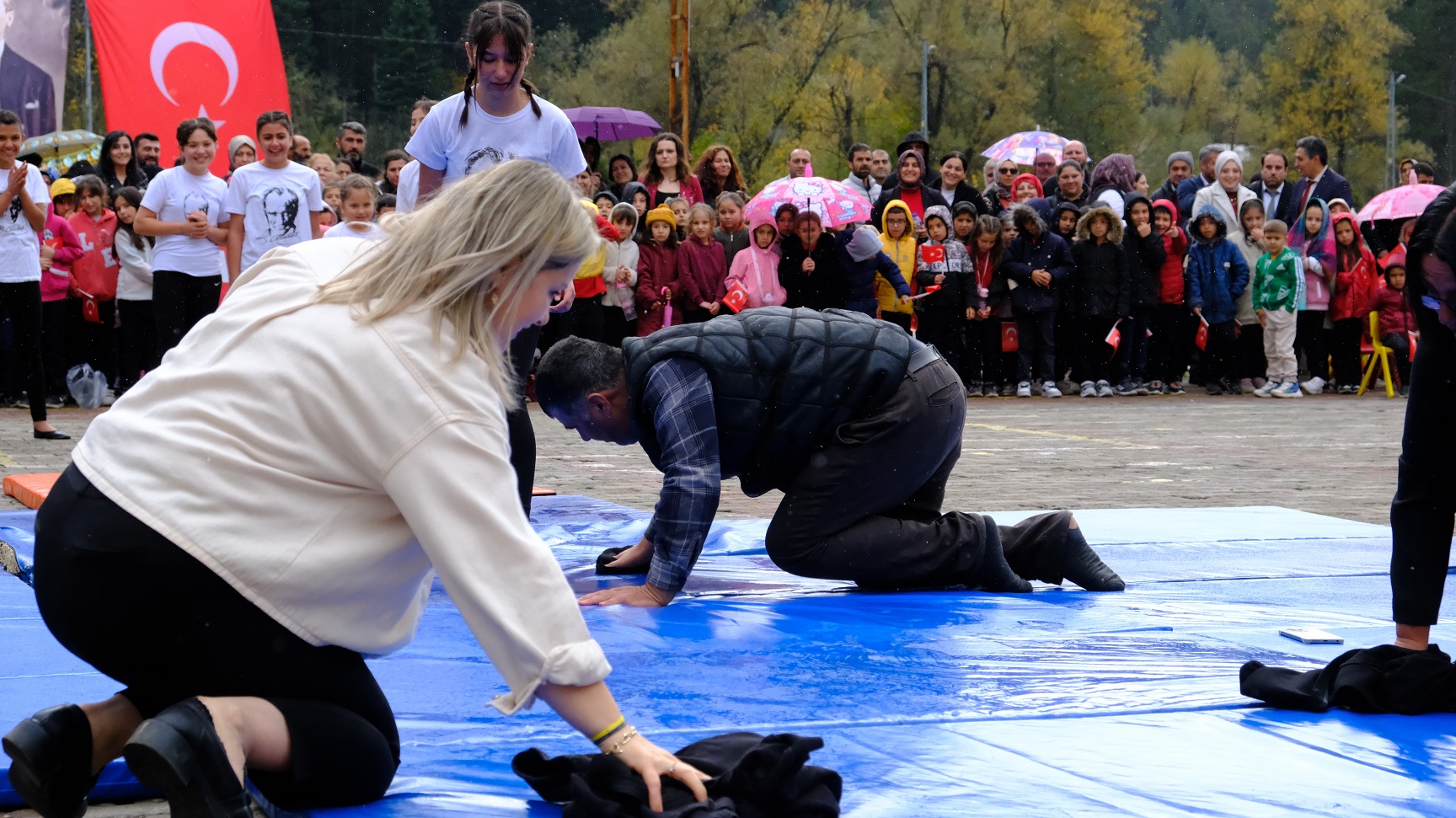 Kastamonu'nun Azdavay ilçesinde 29 Ekim Cumhuriyet Bayramı dolayısıyla düzenlenen tören sırasında sağanak yağmur etkili oldu. Kutlamalarda cimnastik gösterisi yapan öğrenciler ise zor anlar yaşadı.