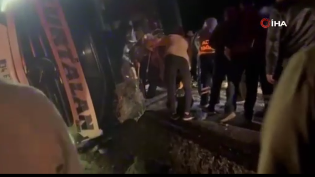 Osmaniye’nin Düziçi ilçesinde kontrolden çıkan yolcu otobüsü devrildi. Kazada yaralıların olduğu öğrenildi.