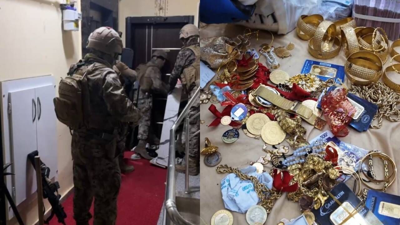 Şüphelilerin ikamet ve iş yerlerinde yapılan aramalarda, piyasa değeri yaklaşık 30 milyon TL olan ziynet eşyası, 3 milyon TL ve 665 euro nakit para, 422 adet senet ve 5 adet çek, 384 adet uyuşturucu hap, 1 adet ruhsatsız av tüfeği ve çok sayıda dijital materyale el konuldu. Gözaltına alınan şüpheliler, işlemleri yapılmak üzere KOM Şube Müdürlüğü'ne götürüldü.