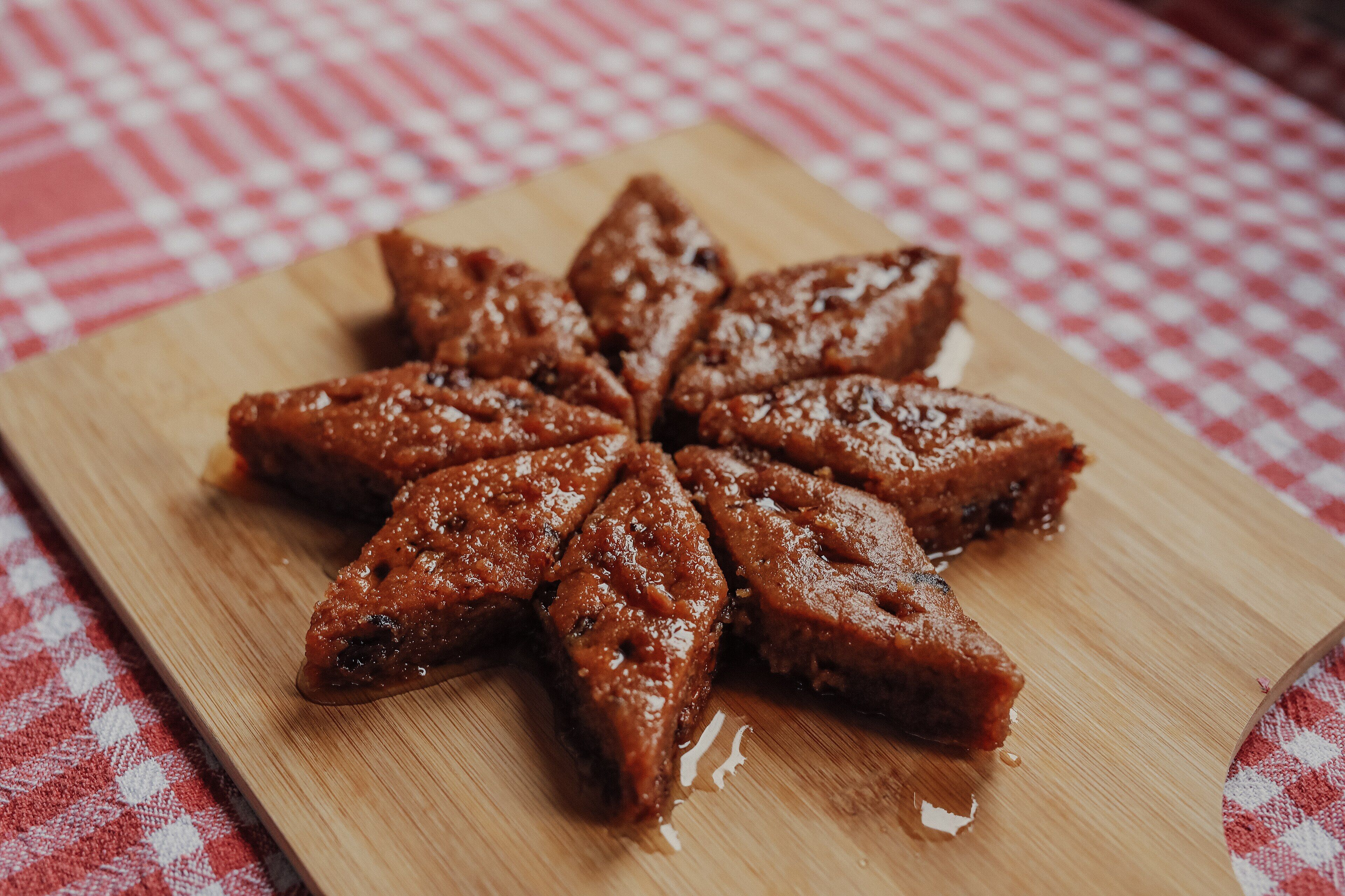 Özellikle Kosova'nın Prizren şehrinde simgeleşen Tespishte, yoğun yağlı dokusu ve şerbetiyle öne çıkan irmik veya un bazlı bir tatlıdır. Fırına verilmeden önce üzerine açılan derin baklava dilimi desenleri, pişirme sonrası dökülen soğuk şerbetin gözeneklere tam nüfuz etmesini ve dengeli bir kıvam almasını sağlar. Düğün ve bayram gibi özel günlerin başrolünde yer alan bu ağır tatlı, genellikle şekerini dengeleyen sert bir Türk kahvesi veya şekersiz çay ile birlikte sunulur.