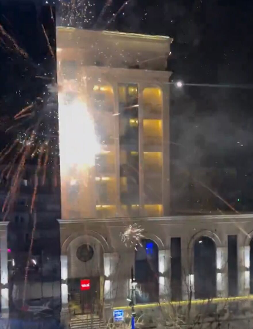 Havai fişeklerin yan yatırılarak otelin camlarına doğru atıldığı belirtilirken, olay sırasında güvenlik önlemlerinin yetersiz kaldığı öne sürüldü. Yaşanan anlar, Kosova’da bulunan içerik üreticisi Tolga Öztürk tarafından kaydedildi.