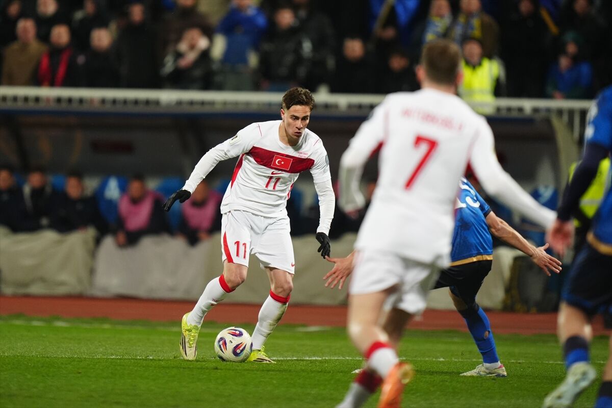 13' A Milli Takım bir kez daha etkili geldi... Penaltı noktası yakınlarında bulunan Kerem Aktürkoğlu, sağ kanattan yerden çevrilen topa hamle yapmak istedi ancak vuruşunu yapamadı. Daha sonra Kosova savunması topu kontrol etti.