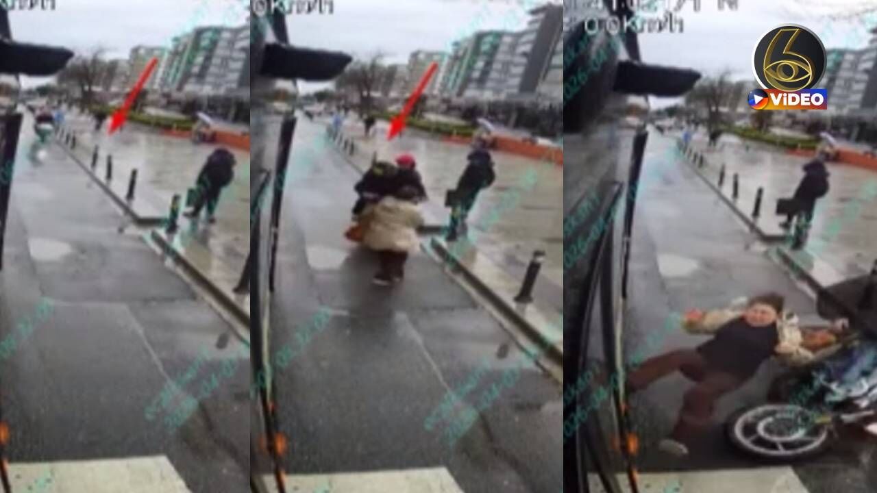 Kadın yolcu çarpmanın etkisiyle metrelerce sürüklendi. Kazada motosikletlinin ve kadının hafif yaralandığı öğrenildi. Yaşananlar ise anbean güvenlik kamerasına yansıdı.