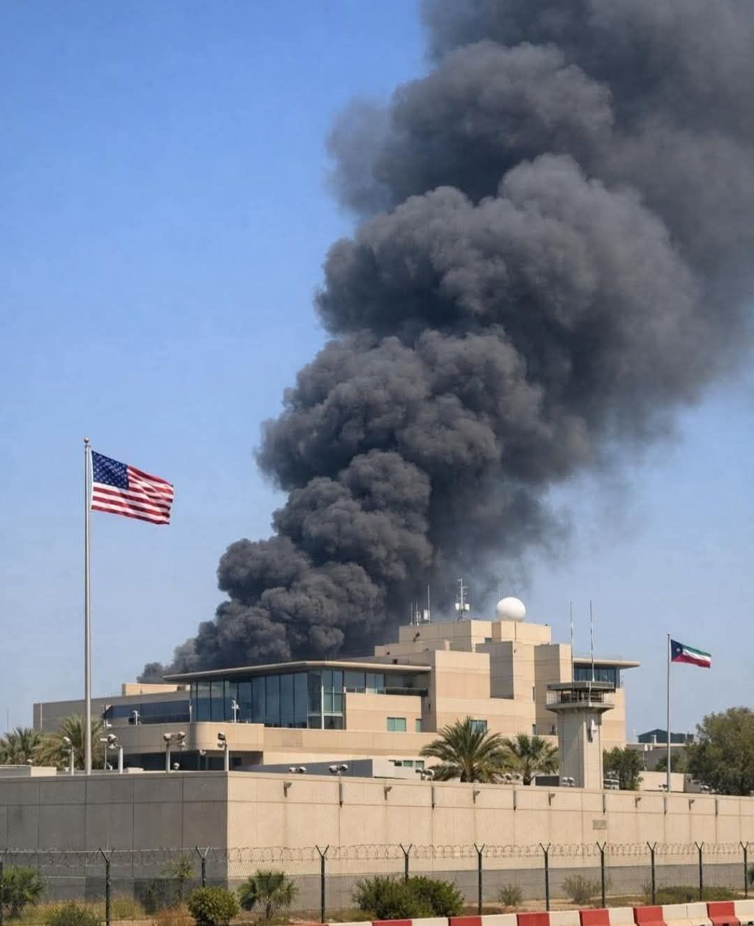 İran medyasında yer alan iddialara göre, bölge genelinde tırmanan yeni saldırı dalgası sırasında Pazartesi günü Kuveyt’teki ABD Büyükelçiliği hasar gördü. Agence France-Presse (Afp) tarafından paylaşılan bilgilere göre, elçilik binasından gökyüzüne doğru yoğun duman sütunlarının yükseldiği görüldü.
