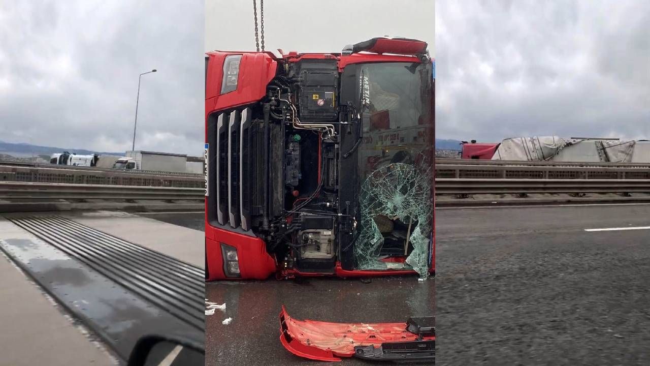 Otoyolun Dilovası ilçesi geçişinde seyir halinde olan 2 tır, şiddetli rüzgarın etkisiyle kontrolden çıkarak devrildi. İhbar üzerine bölgeye jandarma ve otoyol ekipleri sevk edildi.