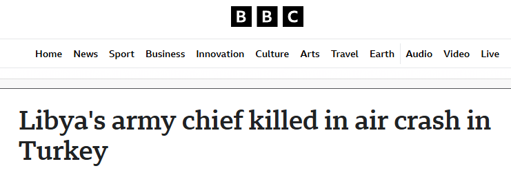 BBC: “LİBYA’NIN EN ÜST DÜZEY ASKERİ KOMUTANI TÜRKİYE’DEKİ UÇAK KAZASINDA ÖLDÜ”