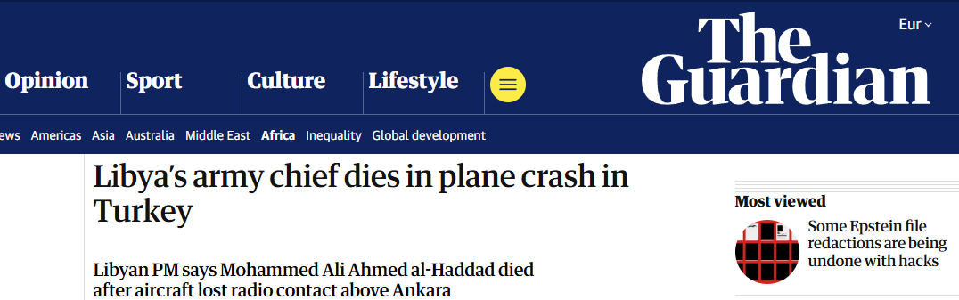 THE GUARDIAN: “TÜRKİYE’DEKİ UÇAK KAZASI LİBYA’DA GÜÇ DENGELERİNİ SARSABİLİR”