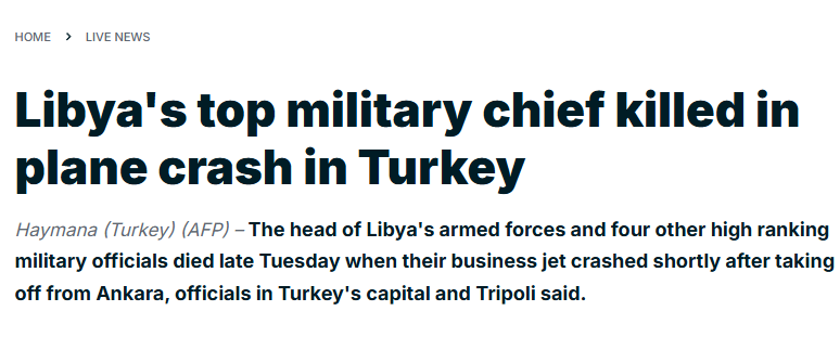 THE LIBYA OBSERVER: "LIBYA ORDUSU KOMUTANI VE SUBAYLARI TÜRKİYE'DE UÇAK KAZASINDA HAYATINI KAYBETTİ"