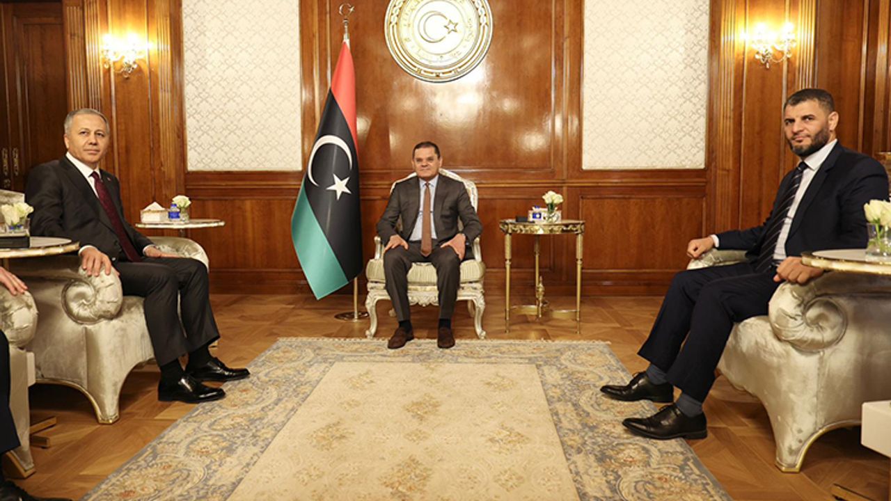 İçişleri Bakanı Ali Yerlikaya, resmi temaslarda bulunmak üzere gittiği Libya’da Ulusal Birlik Hükümeti Başbakanı Abdulhamid Dibeybe ve Libya İçişleri Bakanı İmad et-Tarblusi ile bir araya geldi.