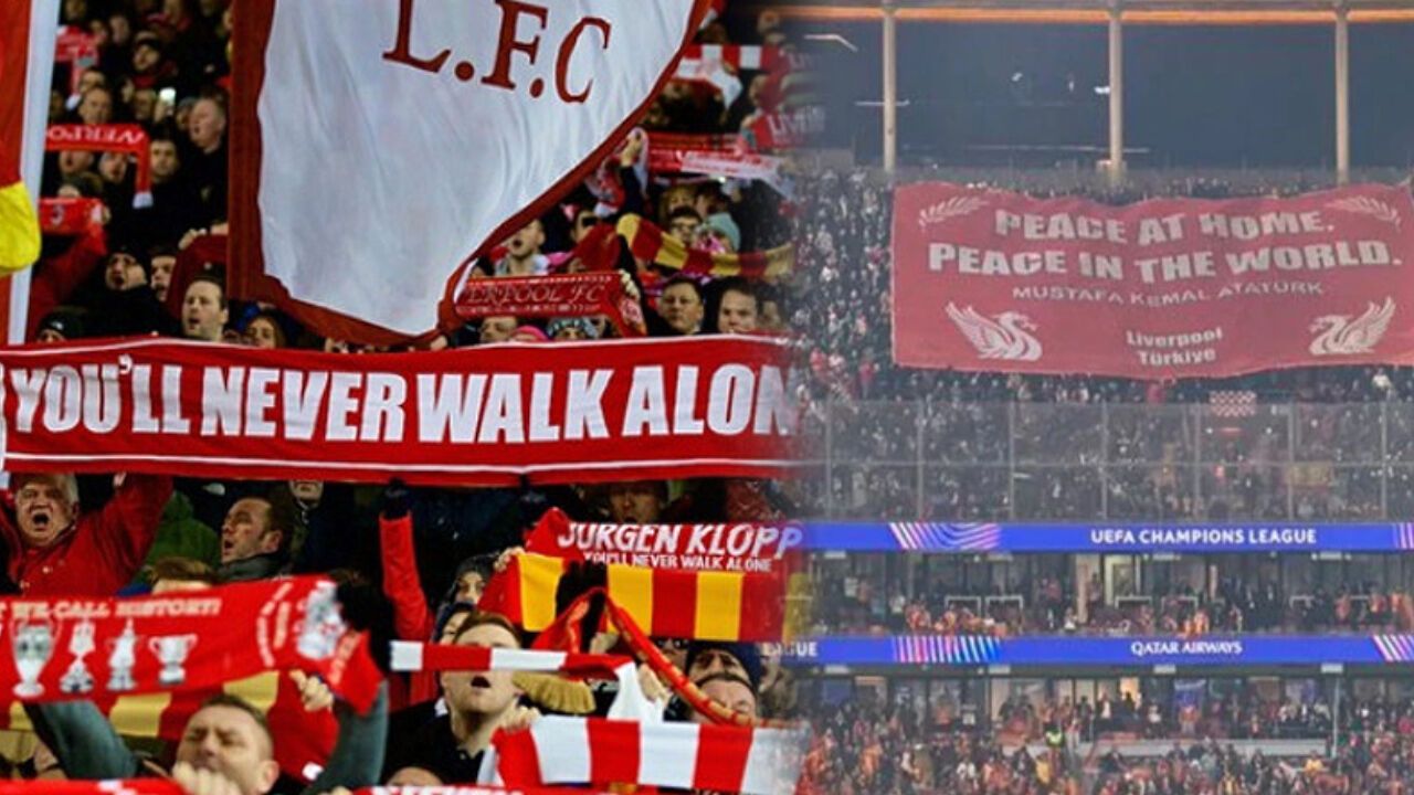 Liverpool FC taraftarları, karşılaşma öncesinde tribünlerde dikkat çeken bir pankart açtı. Pankartta, Mustafa Kemal Atatürk’ün dünya barışına dair ünlü sözüne yer verildi.