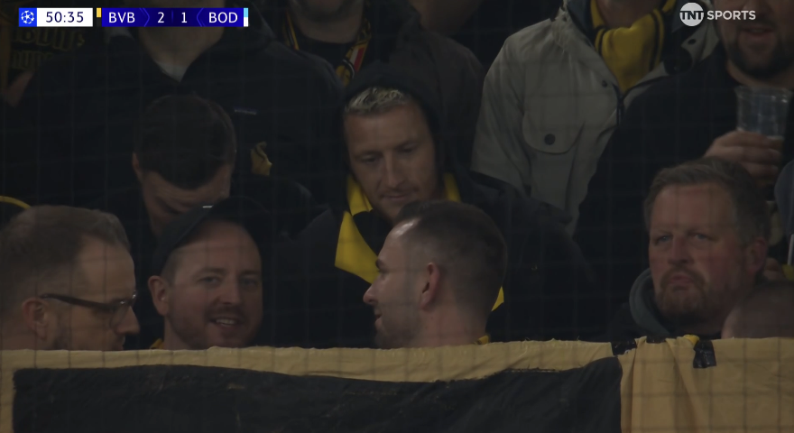 Marco Reus, 12 yıl boyunca formasını terlettiği stadyumda bu kez bir futbolcu olarak değil, bir taraftar gibi yer aldı. Dortmund tribünlerinde besteler söyleyen Reus, takımını yürekten destekledi. Daha düne kadar Borussia Dortmund’un kaptanı olan yıldız isim, bugün tribünde sarı-siyah renklere eşlik eden bir Dortmundluydu.