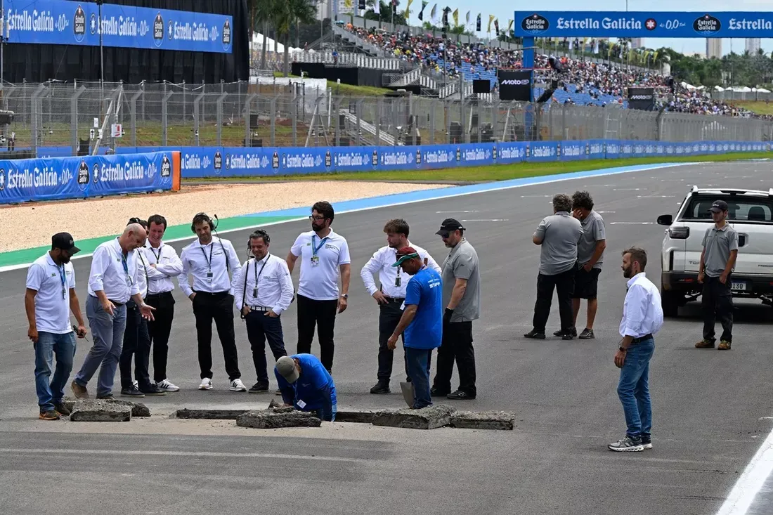 Cumartesi günü koşulan sprint yarışı, sıralama turlarının ardından start/finiş düzlüğünde fark edilen asfalt hasarı nedeniyle tehlikeye girdi. Pistte oluşan çukurun ardından görevliler hızla müdahale ederek asfaltın bir bölümünü kesip onarım çalışması gerçekleştirdi. Yaşanan sorun nedeniyle sprint yarışının startı defalarca ertelendi ve yarış yaklaşık 80 dakika gecikmeli başladı; bu süreçte Moto2 sıralama turları da pazar sabahına alındı. Tüm endişelere rağmen yarış, kuru zeminde 15 tur boyunca sorunsuz şekilde tamamlandı. Ducati fabrika sürücüsü Marc Marquez, durumun çok daha ciddi olabileceğini vurgulayarak, çukur yarış çizgisinin dışında olduğu için yarışın gerçekleştirilebildiğini belirtti ve pistin kısa sürede inşa edilmiş olmasına rağmen iyi iş çıkarıldığını ifade etti.