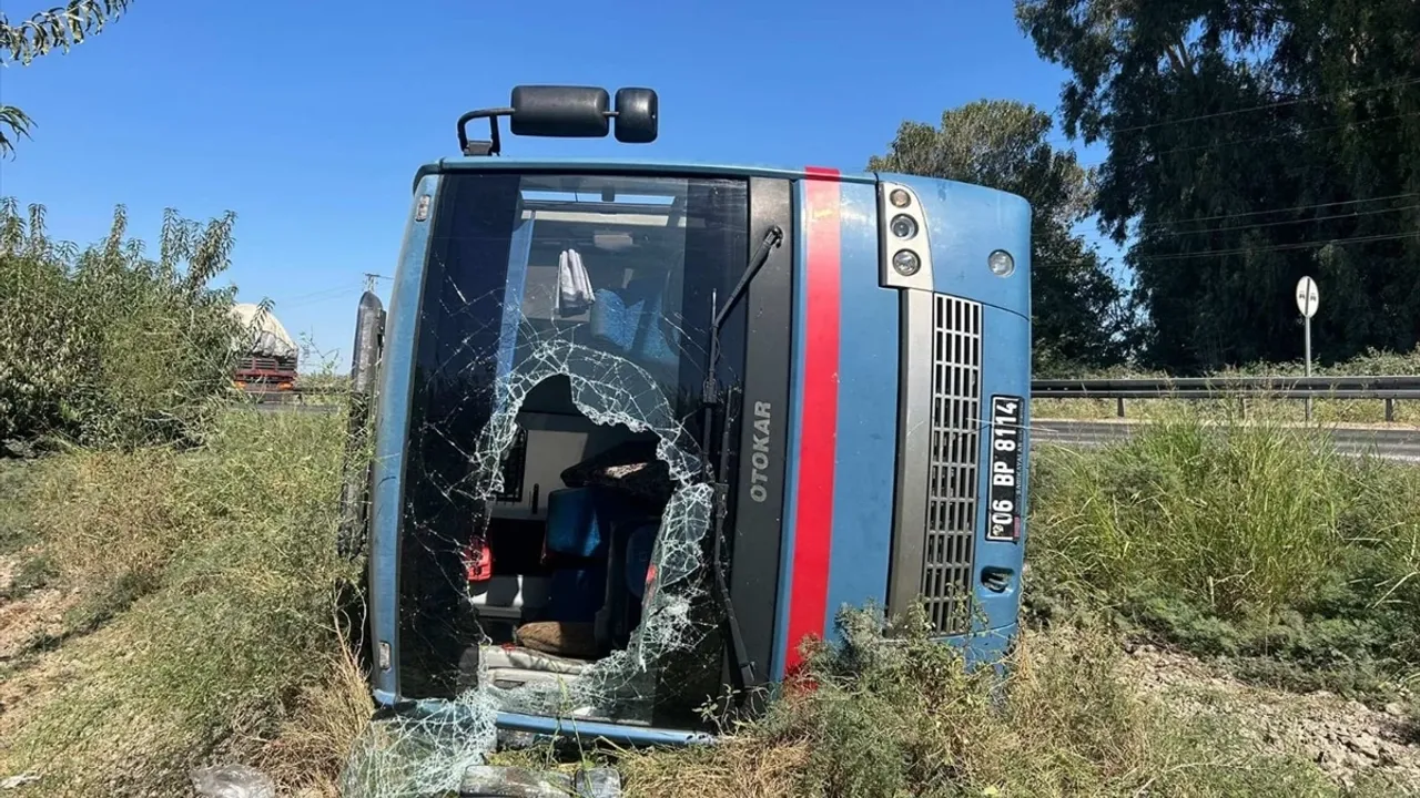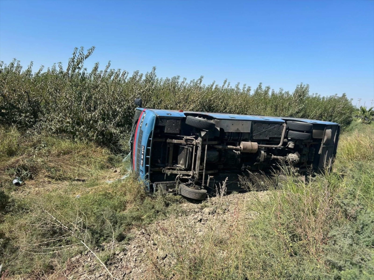 Mersin''de sürücüsünün ismi öğrenilemeyen 06 BP 8114 plakalı midibüs, Alifakı Mahallesi''nde yol kenarındaki otluk alana devrildi.