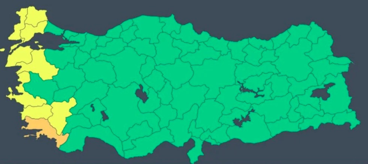Aydın, Balıkesir, Çanakkale, Denizli, Edirne, İzmir, Kırklareli, Tekirdağ''a sarı, Muğla''ya ise turuncu kodlu uyarı yapan MGM, sel ve su baskınlarına karşı dikkatli olunması gerektiğini belirtti.