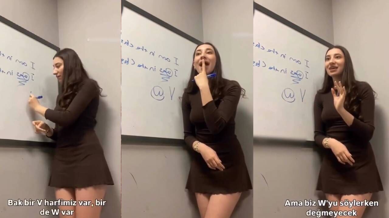 Bir öğretmenin sınıfta öğrencilerine “V” ve “W” harflerinin telaffuzunu öğretmeye çalıştığı anlar sosyal medyanın gündemine oturdu. Eğlenceli anlatımıyla ilgi toplayan öğretmenin ders sırasında öğrencilerle kurduğu diyalog kısa süre içinde geniş kitlelere ulaştı.
