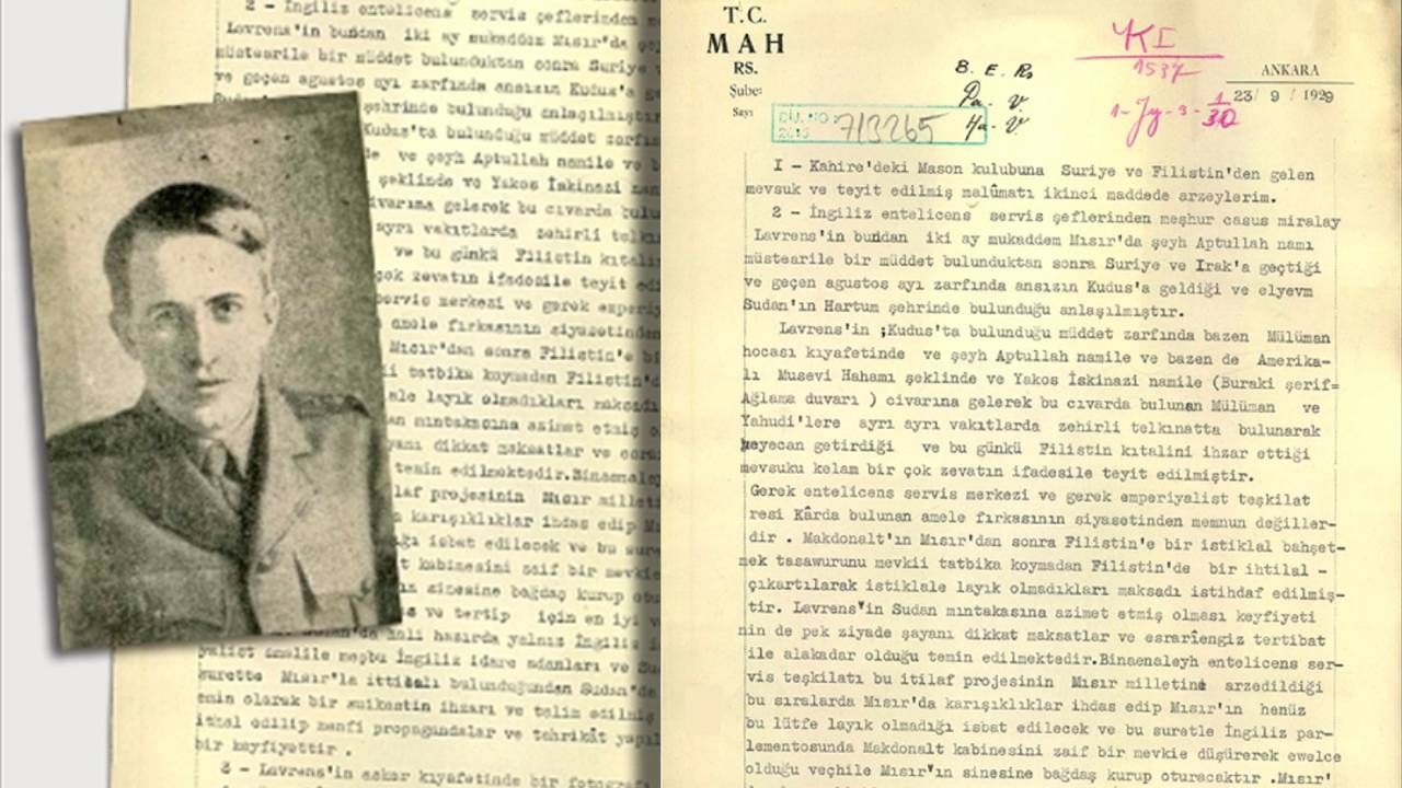 Bu belge, "Arabistanlı Lawrence" olarak bilinen ünlü İngiliz ajanı Thomas Edward Lawrence'ın, Mısır, Suriye ve Irak'ta kıyafet değiştirerek ve farklı isimler altında yürüttüğü faaliyetlere ilişkin olarak Milli Emniyet Hizmeti Riyaseti tarafından hazırlanan 23 Eylül 1929 tarihli yazı oldu.